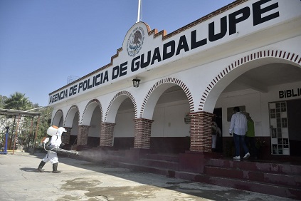 Oaxaca, Oaxaca, Miércoles 19 de Mayo, 2021 (Fuente: Comunicado).- Cumpliendo el compromiso de atender de forma puntual e inmediata las solicitudes vecinales, el Ayuntamiento de Oaxaca de Juárez, a través de la Coordinación Ejecutiva del Centro Histórico, realizó acciones de saneamiento y desinfección en la agencia de Guadalupe Victoria, con el objetivo de mantener entornos saludables y libres de riesgo ante la pandemia de COVID-19.