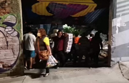 A las 8 de la noche, la alarma se encendió, cuando se informó que en el domicilio estaban preparando despensas para ser entregadas este domingo; fue por eso que, los vecinos se organizaron y bloquearon la calle con una unidad del transporte urbano, comenzando a concentrarse afuera de la vivienda, pero los policías les ordenaron retirarse.