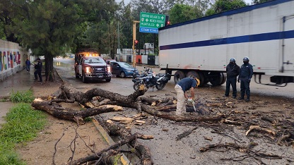 Además, los colaboradores municipales acudieron al Cerro del Fortín, donde se presentó un deslave, a la altura del punto conocido como “Ojito de agua”, donde procedieron a retirar la tierra y a acordonar el lugar. También, en la avenida Tecnológico, esquina riveras del Río Atoyac, procedieron a retirar un árbol derribado por las lluvias.