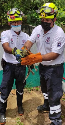 Oaxaca, Oaxaca, Miércoles 07 de Julio, 2021 (Fuente: Adub Santos).- La tarde de este miércoles, elementos de Protección Civil y Bomberos de Santa María Huatulco, del distrito de Pochutla, región Costa de Oaxaca, acudieron al llamado del representante en el fraccionamiento El Zapote, Huatulco, donde un cocodrilo de aproximadamente 4 años de vida se encontraba al interior de un cárcamo de agua potable.
