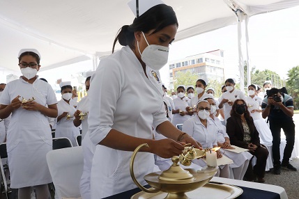 “La pandemia nos transformó la vida, y ustedes tuvieron que ser autodidactas, con la conciencia de la verdadera responsabilidad, que implica esta digna profesión y ahora cuentan con las herramientas suficientes para ir a las instituciones de salud como agentes de cambio en beneficio de las y los pacientes y de la comunidad a la que se deben” puntualizó.