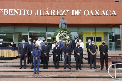 Oaxaca, Oaxaca, Lunes 19 de Julio, 2021 (Fuente: Comunicado).- “La memoria del legado Juarista es el ejemplo para las universitarias y universitarios que día a día honran sus principios y postulados a través del desempeño profesional, la convivencia civilizada y el respeto al derecho ajeno”, refirió el Rector, Eduardo Bautista Martínez.
