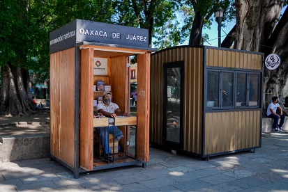 Oaxaca, Oaxaca, Viernes 23 de Julio, 2021 (Fuente: Comunicado).- Para ofrecer una atención de calidad que mejore la experiencia turística de las y los visitantes de la ciudad capital durante la temporada de “Julio, mes de la Guelaguetza”, el Ayuntamiento de Oaxaca de Juárez, a través de la Dirección de Cultura y Turismo, habilitó un módulo de información turística en la Alameda de León y uno más frente al emblemático Templo de Santo Domingo de Guzmán.