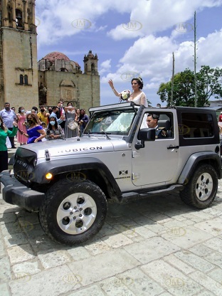 Oaxaca, Oaxaca, Lunes 26 de Julio, 2021.- La hija del ex dirigente del STPEIDCEO, Joel Castillo Pérez, Dalvy Quetzally Castillo Flores, contrajo nupcias el viernes 23 de julio de 2021; la celebración se llevó a cabo al medio día en el templo de Santo Domingo de Guzmán y más tarde los novios e invitados se dieron cita en lujosa quinta del municipio de Tlalixtac de Cabrera.