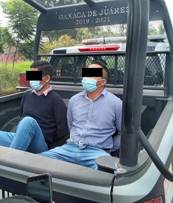 Los masculinos fueron interceptados por elementos de la Unidad Motorizada de Acción Rápida (UMAR) de la policía municipal de la capital, cuando los presuntos señalados viajaban en una camioneta de color blanco marca GMC Acadia, con placas de circulación TLW-61-98 del estado de Oaxaca, sobre avenida Periférico y la calle Nuño del Mercado, en inmediaciones de la Central de Abasto.