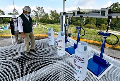 PEMEX informó que en el andén de llenado de recipientes portátiles de la Terminal de Distribución de Gas Licuado de Tepeji del Río el director general, Octavio Romero, realizó la carga del primer cilindro de gas de 20 kg del primer lote que se tiene previsto para el arranque de actividades de Gas del Bienestar.