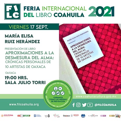 Arteaga, Coahuila, Oaxaca, Viernes 17 de Septiembre, 2021 (Fuente: Comunicado).- Con la representación del gobernador Alejandro Murat Hinojosa, la Secretaria de las Culturas y Artes de Oaxaca (SECULTA), Karla Villacaña Quevedo participó en la inauguración de la vigésima tercera edición de la Feria Internacional del Libro, la cual se desarrollará del 16 al 26 del presente mes en dicha entidad.