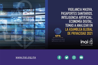 Oaxaca, Oaxaca, Lunes 11 de Octubre, 2021 (Fuente: Comunicado).- Vigilancia masiva, pasaportes sanitarios, tratamiento de datos personales en el ámbito electoral, identidad digital, flujos transfronterizos de datos, economía digital, comercio electrónico, inteligencia artificial e internet de las cosas, entre los temas a discutir y analizar en la Asamblea Global de Privacidad 2021 (GPA, por sus siglas en inglés), a celebrarse virtualmente del 18 al 21 de octubre, en la Ciudad de México.