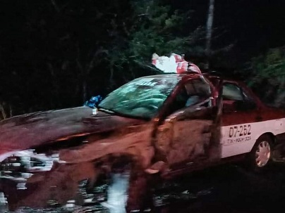 En este accidente se vieron involucrados, una unidad del servicio de taxi de la zona chontal y un automóvil particular.