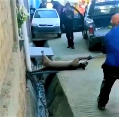 En un video grabado por un celular y difundido en redes sociales, se puede observar el operativo y estrategia que aplicaron la autoridad municipal y su policía para sacar al felino de la casa.