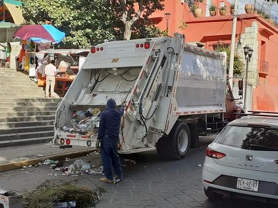 El director de servicios municipales, Humberto Benítez, informó que se estima que hay en las calles tirada más de 9 toneladas de basura, que se comenzaron a retirar por sectores, avanzando después de las 18 horas de este viernes por la zona norte, en el área del barrio de Jalatlaco y toda la avenida Periférico, después la zona residencial, junto con la parte poniente, para unir esfuerzo en el Mercado de Abasto, que es donde está el mayor volumen de desperdicios concentrados.