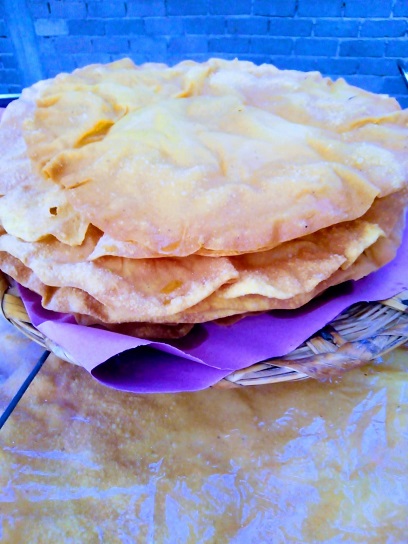 Primero se mezclan uno a uno los ingredientes hasta formar una masa suave; por separado se enharina una superficie lisa en donde se divide la masa en pequeñas bolitas, se barnizan con aceite, se cubren con una frazada y se dejan reposar por 30 minutos. Pasado el tiempo se extiende cada bolita con un rodillo para después freírlas en aceite caliente hasta que se doren.