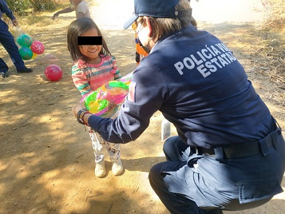 *Policías viales estatales regalan juguetes a niños de bajos ingresos, por el Día de Reyes