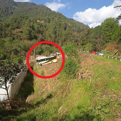 De acuerdo al informe oficial, la unidad de transporte se quedó sin frenos, lo que causó que el conductor perdiera el control y se saliera de la carretera, a punto de precipitarse a una hondonada de más de 10 metros de profundidad, pero quedó atorado entre la maleza y los pastizales que había en el lugar.