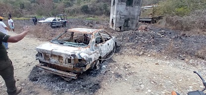 Al momento del hallazgo, también se encontró un auto tipo Civic marca Honda totalmente calcinado, a unos metros el cuerpo putrefacto.