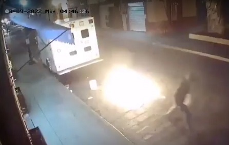 Aprovechando la oscuridad de la madrugada y que no había gente por la zona, se puede ver claramente la forma en que el individuo vierte 2 bidones de combustible sobre la unidad utilizada para atender emergencias médicas, para después prenderle fuego y darse a la fuga.