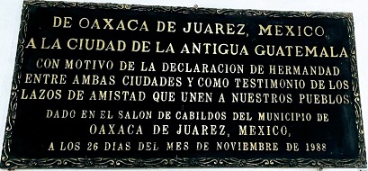 El valor arquitectónico hermana a estos destinos, fraternidad que se fortalece con el acta de Declaración de Hermandad firmada el 19 de agosto de 1988 en donde Oaxaca de Juárez y La Antigua Guatemala se reconocen como ciudades con raíces indígenas comunes y similitudes históricas, además del reconocimiento como Patrimonio Cultural de la Humanidad que en 1979 la Unesco otorgó a La Antigua Guatemala y en 1987 a Oaxaca de Juárez.
