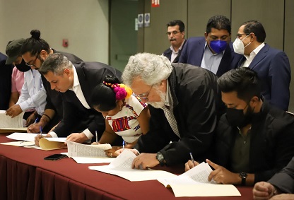 *El gobernador Alejandro Murat firmó, junto con el subsecretario de DH de la SEGOB, Alejandro Encinas, un pacto convenio de no agresión entre las familias de la zona triqui