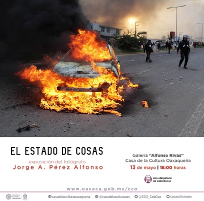La exposición “El estado de cosas” que será exhibida para la galería “Alfonso Rivas” de la Casa de la Cultura Oaxaqueña, se conforma de testimonios y memoria, es una forma de escribir con luz el pasado, una forma de desnudar la realidad, un tiempo detenido para reflexionar en el futuro.