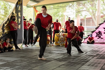 En este marco, los estudiantes, junto a sus padres y madres, también observaron una presentación de la Danza de León, un baile tradicional en la cultura china, donde los artistas imitan los movimientos disfrazados de la representación del animal para traer buena suerte y fortuna.