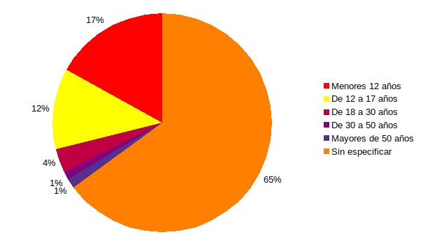 En los otros 180 casos denunciados (65%) se desconoce la edad de las víctimas porque no fue especificada, pero en 42 de estos, es decir, el 23%, la edad máxima estimada fue de 17 años.