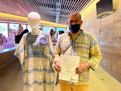 Y la maestra Flora Hernández Sánchez de Pinotepa de Don Luis obtuvo “mención honorífica” con su pieza: “Enredo tradicional” tejido en telar de cintura teñido con tinte de caracol y añil.