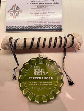 Además de la maestra Eustacia Antonio Mendoza de Santo Tomás Jalieza, en Enredos, Pozahuancos y Fajas con la pieza: “Contando una Historia” fajilla tejida en telar de cintura. 2º lugar.