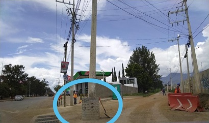SINFRA y sus colaboradores dejan claro la poca capacidad y la gran negligencia y torpeza de sus funcionarios, quienes fueron incapaces de realizar la gestión de cambio de lugar de un poste de luz ante la Comisión Federal de Electricidad (CFE), en una vialidad adyacente, misma que pone en peligro la integridad de los automovilistas que transitan sobre estas calles.