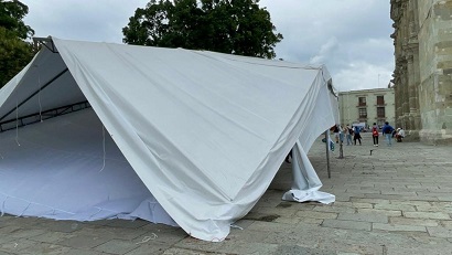 Al instalarse en plantón indefinido en el zócalo de la ciudad, integrantes de las organizaciones sociales iniciaron el desmantelamiento de los módulos instalados en la Alameda de León.