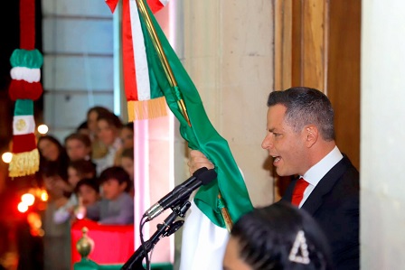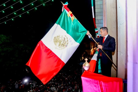 Oaxaca, Oaxaca, Viernes 16 de Septiembre, 2022 (Fuente: Comunicado).- Nuevamente la algarabía y fervor patrio de las familias oaxaqueñas se hizo presente en el zócalo de la capital, al participar en la ceremonia con motivo del 212 aniversario del inicio de la lucha de la Independencia de México, el cual fue encabezado por el gobernador Alejandro Murat Hinojosa, desde el balcón principal del Palacio de Gobierno.