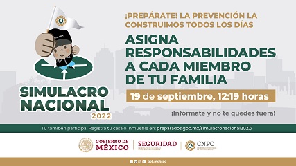 Oaxaca, Oaxaca, Lunes 19 de Septiembre, 2022 (Fuente: Comunicado).- La Coordinación Estatal de Protección Civil de Oaxaca (CEPCO), dio a conocer que este lunes 19 de septiembre, con motivo del Simulacro Nacional 2022, se activará la alerta sísmica a las 12:19 horas, por lo que pidió a la población no asustarse y reiteró la invitación para que las familias, estudiantes y trabajadores, participen en este ejercicio que refuerza la cultura de la prevención en el país ante el registro de un fenómeno natural.
