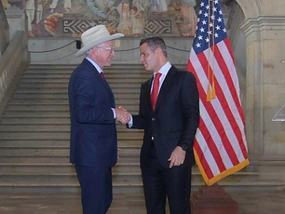 Oaxaca, Oaxaca, Martes 20 de Septiembre, 2022 (Fuente: Comunicado).- En Palacio de Gobierno, la casa de todas las oaxaqueñas y oaxaqueños, el gobernador Alejandro Murat Hinojosa dio la bienvenida al embajador de los Estados Unidos de América en México, Ken Salazar, quien acude a la entidad para encabezar la sexta Reunión de Gobernadores de la región sur-sureste, que tendrá lugar este martes 20 de septiembre en el Centro Cultural y de Convenciones de Oaxaca.