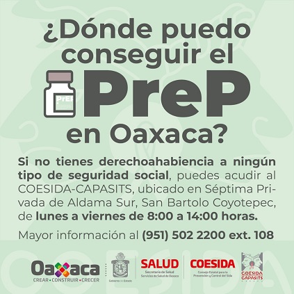 *Un medicamento de toma diaria es un método más de prevención; se estará entregando en las instalaciones del Coesida- Capasits que se localizan en San Bartolo Coyotepec