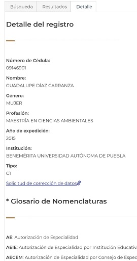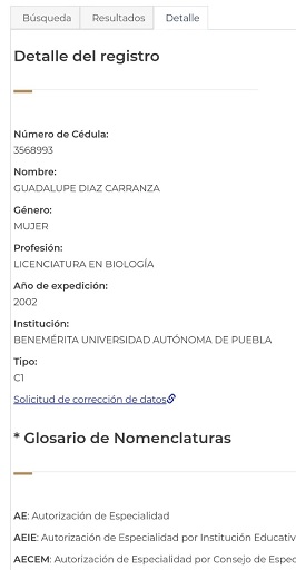 Finalmente, debemos informar algo más delicado aún, que la susodicha ni siquiera cursó la carrera de derecho, completó en el año 2002 la Licenciatura en Biología en la Benemérita Universidad Autónoma de Puebla con el registro de la cédula profesional número 3568993, cursó también la maestría en ciencias ambientales en el año 2015, bajo la cédula 09146901, después de esto, todo lo demás es falsificado, tal como acostumbra hacer su familia, sirva como ejemplo las acciones de su padre, Juan Ramón Díaz Pimentel, a quien todos sus compañeros de la universidad que estudiaron con él, saben que estudio para Dentista y hoy ostenta un título falso de Medicina General… pero esto y más, es material para un siguiente número de esta serie.