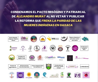 *Exigimos a la Defensoría de los Derechos Humanos del Pueblo de Oaxaca (DDHPO) y a la Comisión Nacional de Derechos Humanos (CNDH) interponer las acciones de anticonstitucionalidad a efecto de no dejar en estado de indefensión a las mujeres indígenas de Oaxaca