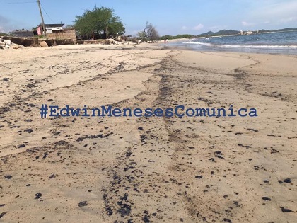 Mientras tanto, la mancha de crudo sigue cubriendo la playa a través de la corriente del mar.