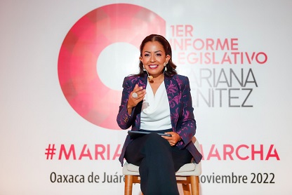 Por su parte, la diputada local Mariana Benítez Tiburcio, rindió su primer informe de actividades legislativas, mediante el cual destacó sus acciones parlamentarias a favor de las mujeres, la niñez y la juventud oaxaqueña.