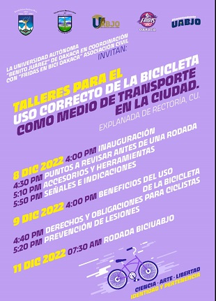 Por otra parte, la UABJO le apuesta a la cultura del uso de la bicicleta y en coordinación con Fridas En Bici Oaxaca convoca a LA RODADA UABJO 2022, el 11 de diciembre.