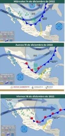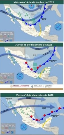 Oaxaca, Oaxaca, Jueves 15 de Diciembre, 2022 (Fuente: Comunicado).- La Coordinación Estatal de Protección Civil y Gestión Integral de Riesgos de Oaxaca, dio a conocer que el Frente Frío número 16, que incursionó sobre el noroeste del Golfo de México este miércoles, ocasionará lluvias de intensidad variable con mayor presencia en zonas montañosas del norte del Istmo, Sierra Norte, Sierra Mazateca y Cuenca del Papaloapan, donde es posible algunas tormentas locales aisladas con vientos arrachados.