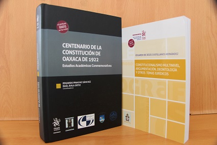 Asimismo, se encuentran disponibles las coediciones hechas por la institución y la editorial Tirant Lo Blanch como son.el libro Constitucionalismo Multinivel, Argumentación, Deontología y otros temas jurídicos, del doctor en derecho e investigador oaxaqueño Eduardo de Jesús Castellanos Hernández, y “Centenario de la Constitución de Oaxaca de 1922. Estudios Académicos Conmemorativos”, que reúne artículos y ensayos de una treintena de especialistas en Derecho Constitucional y ciencias afines en torno al referido texto constitucional.