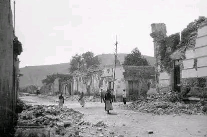 Paredes y casas derruidas y expandidas por las calles como un genuino polvorín. El polvo calcáreo invadiendo tus sensibles ojos, los sonidos incesantes del repicar de las campanas en las iglesias no dejaban de sonar….