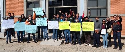 Nuestra inconformidad se debe a que a 13 de nuestros compañeros que laboran en los planteles de Huajuapan, Juchitán, Oaxaca y Salina Cruz les rescindieron sus contratos, y de manera arbitraria les impidieron el acceso, así también checar sus asistencias en sus centros de trabajo.