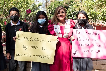 Ante 663 estudiantes del plantel, la Directora General refrendó al estudiantado la disponibilidad y total apoyo por parte del Gobierno que encabeza Salomón Jara Cruz, para alentar e impulsar sus aspiraciones académicas rumbo a la profesionalización.