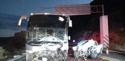 Cuatro integrantes de una familia originaria de Santa María Colotepec, Pochutla, Oaxaca, murieron de manera instantánea, tras un choque frontal contra un autobús; un menor de 8 años se debate entre la vida y la muerte.
