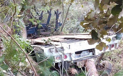Oaxaca, Oaxaca, Domingo 12 de Febrero, 2023 (Fuente: Agencias).- A sus 43 años de edad falleció el chofer Ubaldo Hernández, tras desbarrancarse el camión maderero que conducía cargado de trozos de madera.