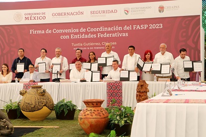 Tuxtla Gutiérrez, Chiapas, Jueves 16 de Febrero, 2023 (Fuente: Comunicado).- El Gobernador de Oaxaca Salomón Jara Cruz firmó el Convenio de Concertación del Fondo de Aportaciones para la Seguridad Pública (FASP), mediante el cual se destinarán 242 millones de pesos para la entidad en materia de seguridad a favor de las y los oaxaqueños.