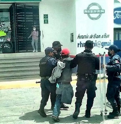 Oaxaca, Oaxaca, Domingo 05 de Marzo, 2023 (Fuente: Wilfrido Kantú).- La policía municipal de Asunción Nochixtlán, de la región Mixteca de Oaxaca, por órdenes del presidente, detuvieron a una persona discapacitada, al no tener una pierna y necesita apoyarse con muletas.