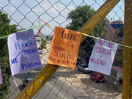 Durante el mediodía de este jueves, estudiantes de distintos grados del CBTIS, número 26, ubicado en la zona norte de la capital, pegaron carteles que revelaron actos constitutivos de presunto acoso sexual; “el tendedero de denuncia” quedó a un costado del acceso principal, por lo que para nadie fue indiferente la protesta pacífica.