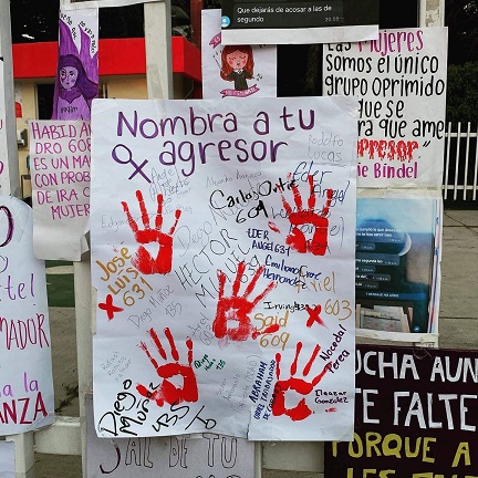 *Denuncian las estudiantes, a través de tendedero de denuncia, a sus agresores sexuales, entre ellos profesores, alumnos y personal de cafetería
