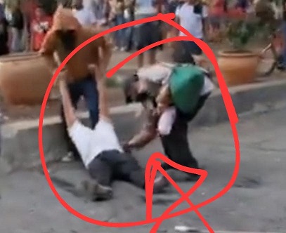 En videos y fotos se observa cuando el sujeto participa en la agresión a un adulto mayor no identificado, al que noquearon de una patada. El detenido aparece robando de los bolsillos de la víctima, que tras ser atendido se retiró por su propio pie.